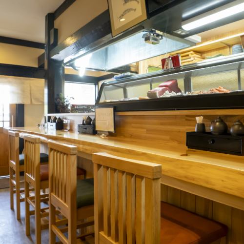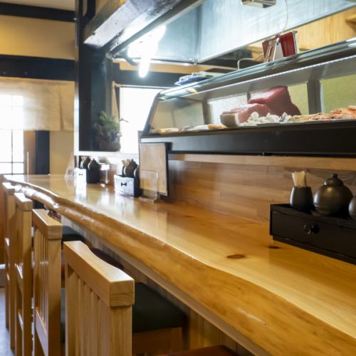 一枚板のカウンターは、職人の手仕事を目の前で楽しめる特等席。ネタの香りや包丁の音を間近で感じられ、料理ができあがる瞬間を見届ける臨場感は格別です。おひとり様やカップルでの利用にも最適で、会話と味に集中できる静かな時間が魅力です。
